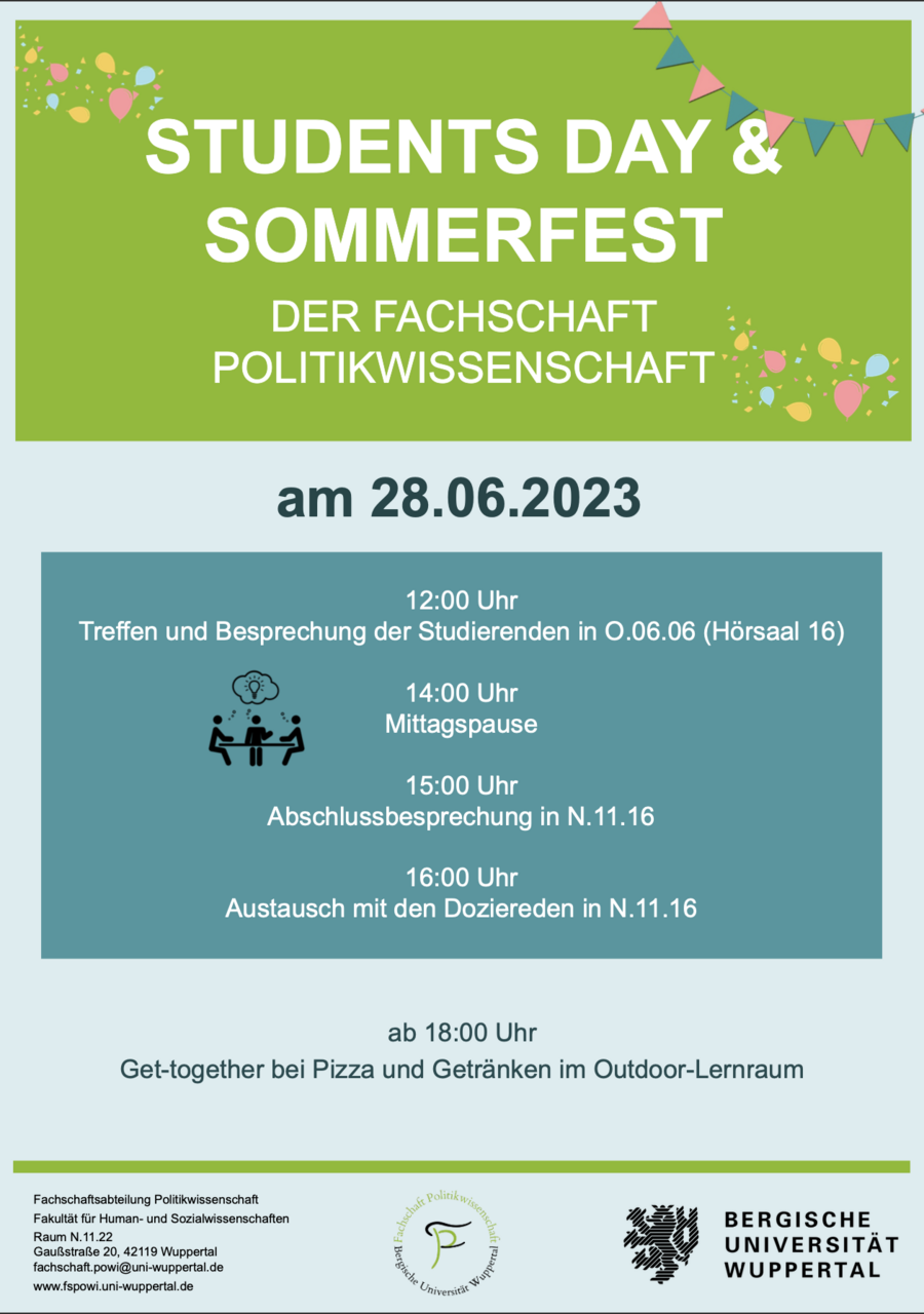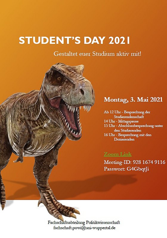 Der Student's Day der Politikwissenschaft wird jährlich von der Fachschaftsabteilung Politikwissenschaft organisiert. Die Dozierenden der Politikwissenschaft stellen die Studierenden an diesem Tag i. d. R. von den Veranstaltungen frei, sodass eine Teilnahme für alle Interessierten ermöglicht werden kann.